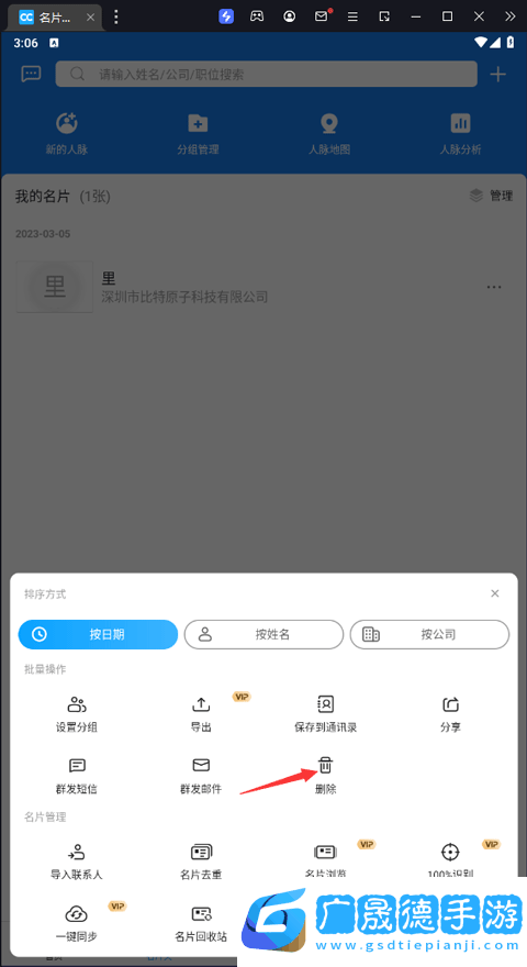 5、最后選擇你要刪除的名片,點(diǎn)擊【刪除】,你的名片就刪除啦。