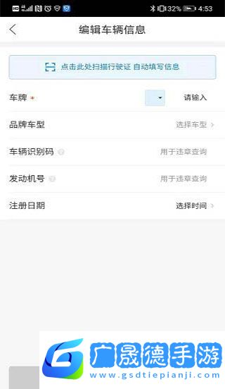 4、點擊去添加進(jìn)入編輯車輛信息界面,可通過掃描車輛行駛證自動添加。