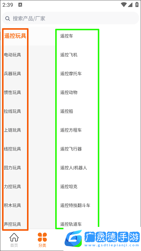 *界面非常的清晰,能夠讓用戶對所有玩具類別一目了然。