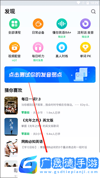 3、內置來自硅谷前沿語音識別技術,給你的英語口語實時打分,矯正發音。