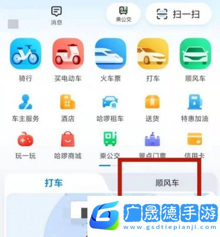 在哈啰出行首頁,找到順風(fēng)車選項。