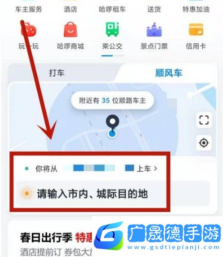 2、點擊車主進入順風(fēng)車界面,設(shè)置目的地。