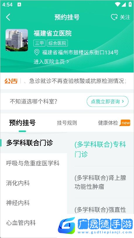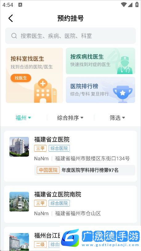 2、進入預約掛號功能后根據自己的需求選擇合適的醫院