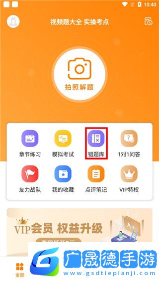 1、下載進入金題護考app,點擊錯題庫功能;
