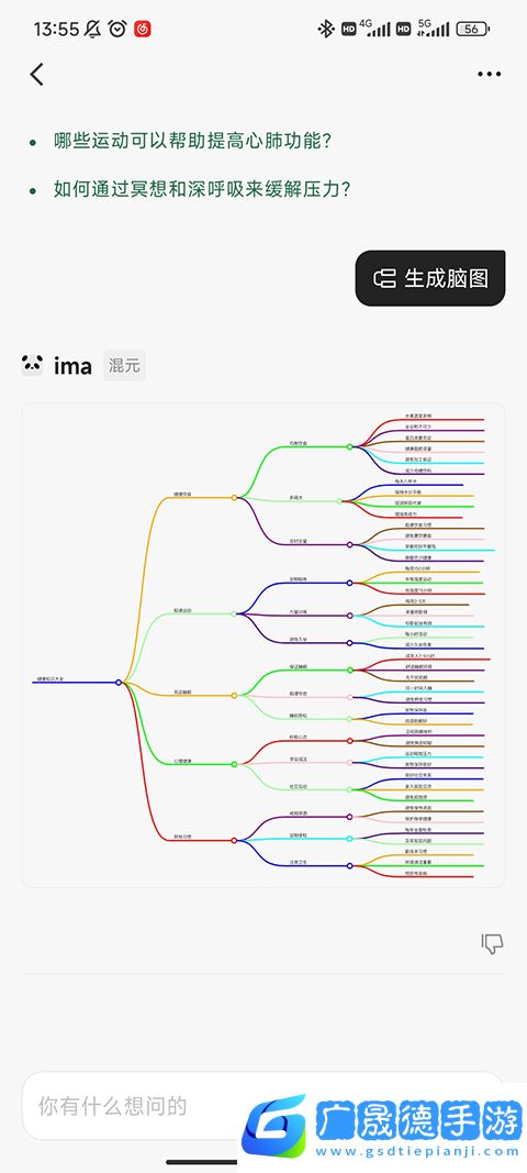 在對話底部的功能欄中點擊“生成腦圖”,或直接在輸入框中發送“生成腦圖”,即可基于當前內容生成腦圖。