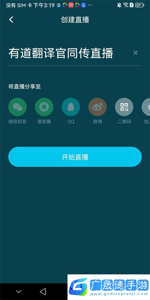 4、點擊右上角“直播”按鈕,還可在線創(chuàng)建實時直播,并分享至各大好友平臺哦