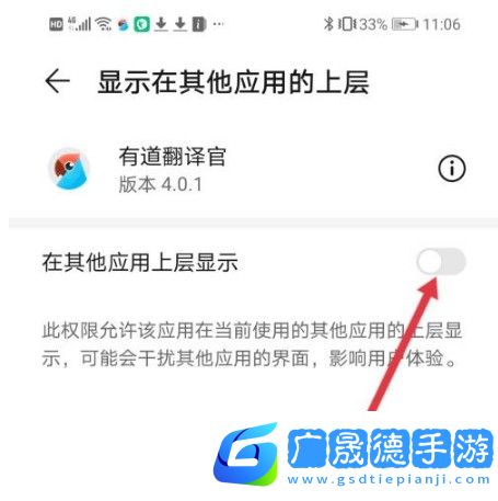 來到下面的頁面,然后把【在其他應用上層顯示】的按鈕開啟即可。
