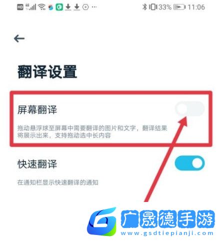 來到翻譯設置,然后把【屏幕翻譯】的按鈕開啟。