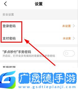 2、然后可以在系統設置界面中看到登陸密碼和支付密碼的設置選項了,點擊進入修改密碼即可