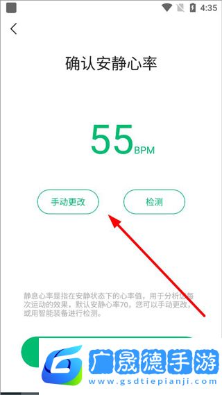 3、查看靜息心率,用戶可以手動更改或檢測;